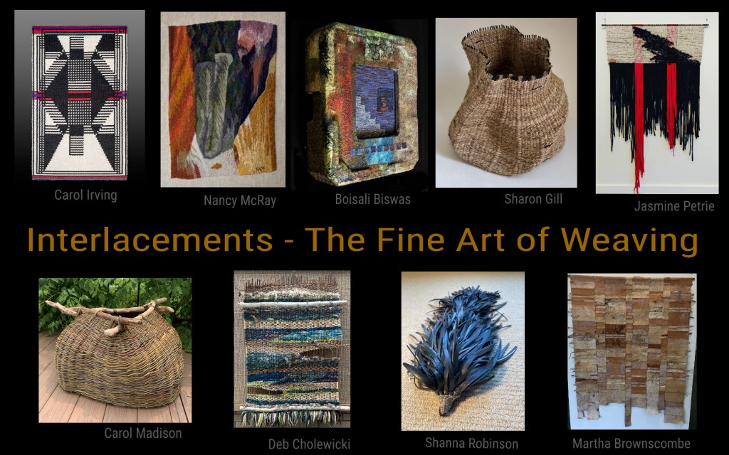Above: Interlacements – The Fine Art of Weaving is an evolving traveling show that has been displayed at Charlevoix Circle of Arts (2022), Crooked Tree Arts Center Traverse City (2023), Gifts of Art at U of M Hospital (2023), and Lowell Arts Center (2024).
