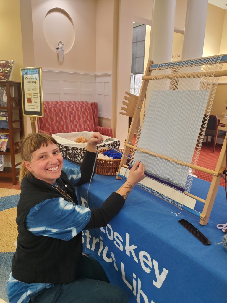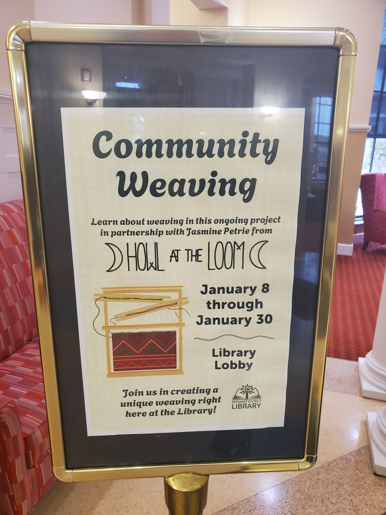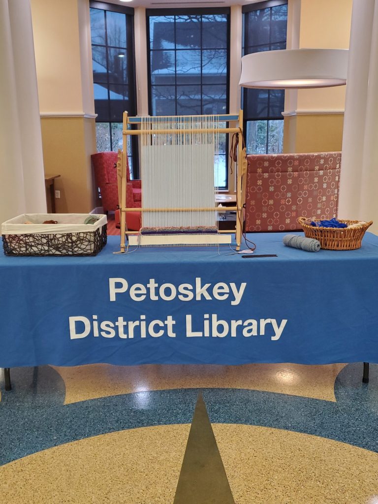 The community tapestry weaving is going on now until the end of January at the Petoskey District Library! Head on over and weave your shot! When time is up, I will finish the tapestry for hanging and it will be on display at the Library for years to come.